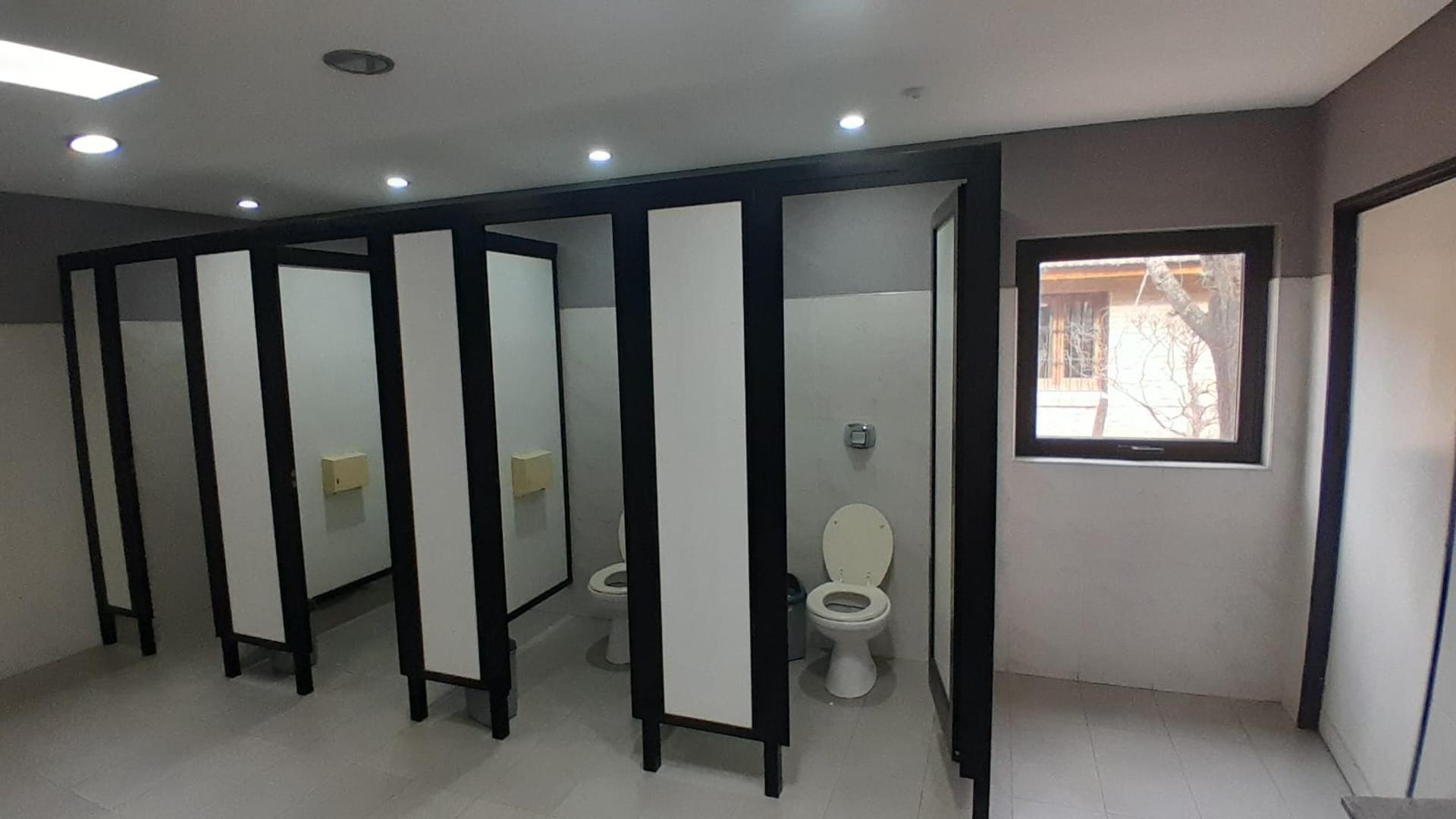 Batería de baños de hombre, de mujer y baño accesible para personas con movilidad reducida.