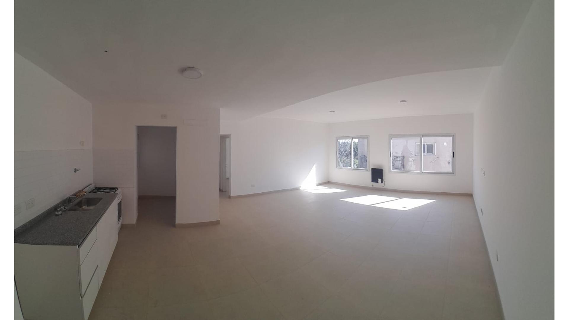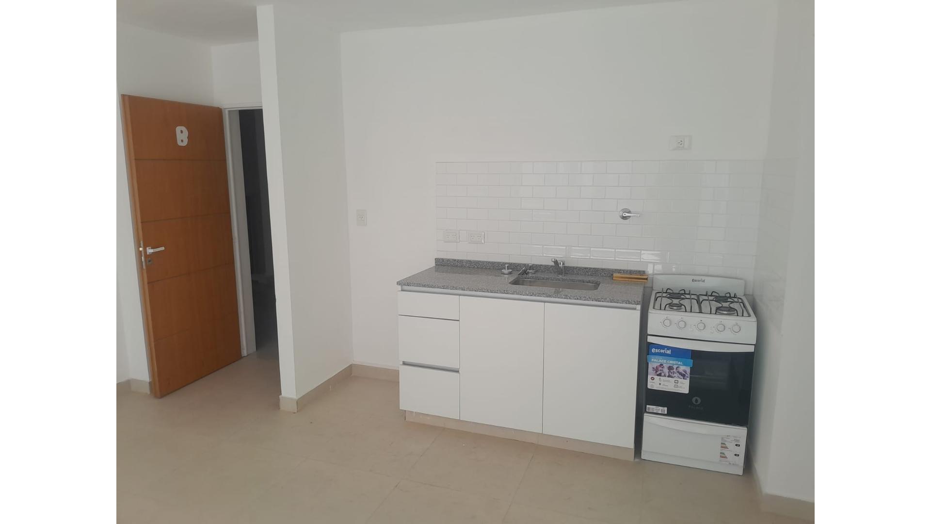 Departamento de dos ambientes, living, comedor, cocina con artefacto de cocina a gas natural, mesada, bajo mesada, lugar para conexión lavarropas, calefacción, baño completamente instalado, dormitorio con calefacción y placard.-
