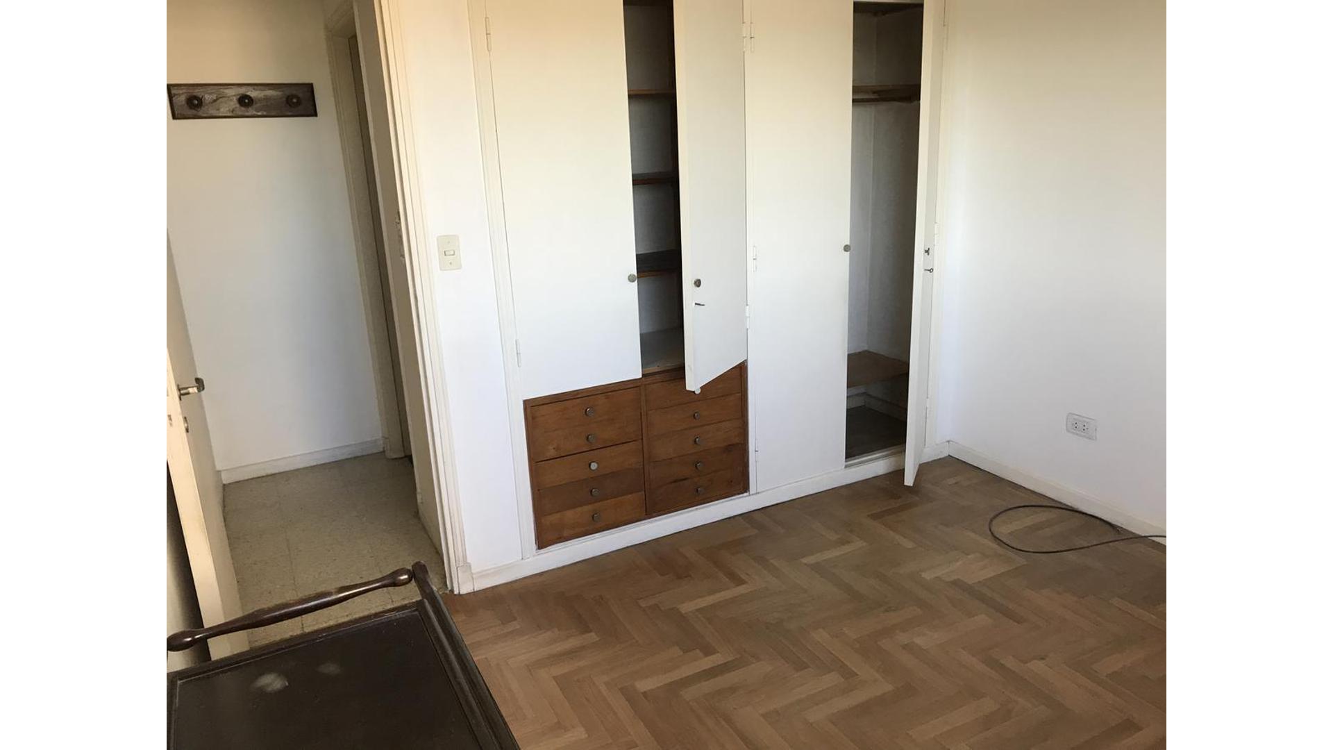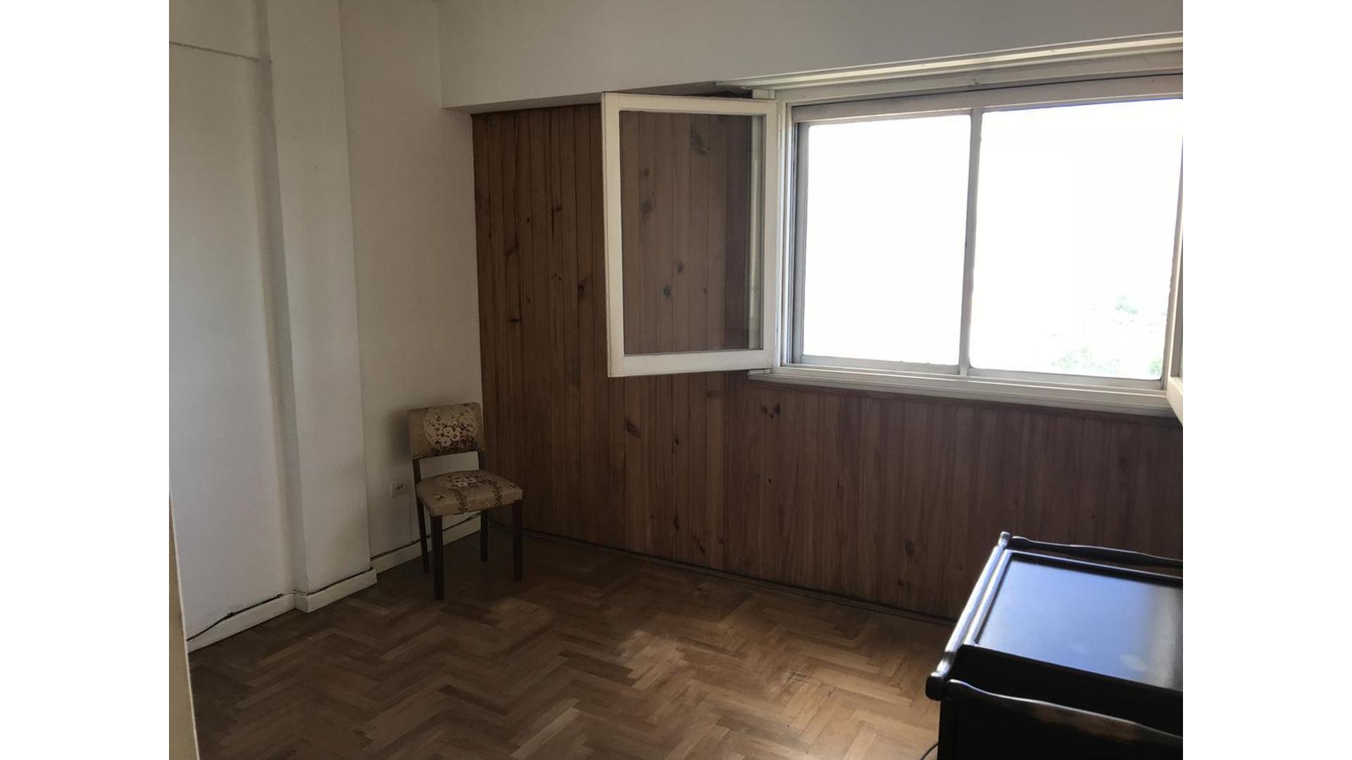 Departamento de dos ambientes: dormitorio con placard, baño completo, living/comedor con balcón, cocina, pisos de mosaicos, parquet.-