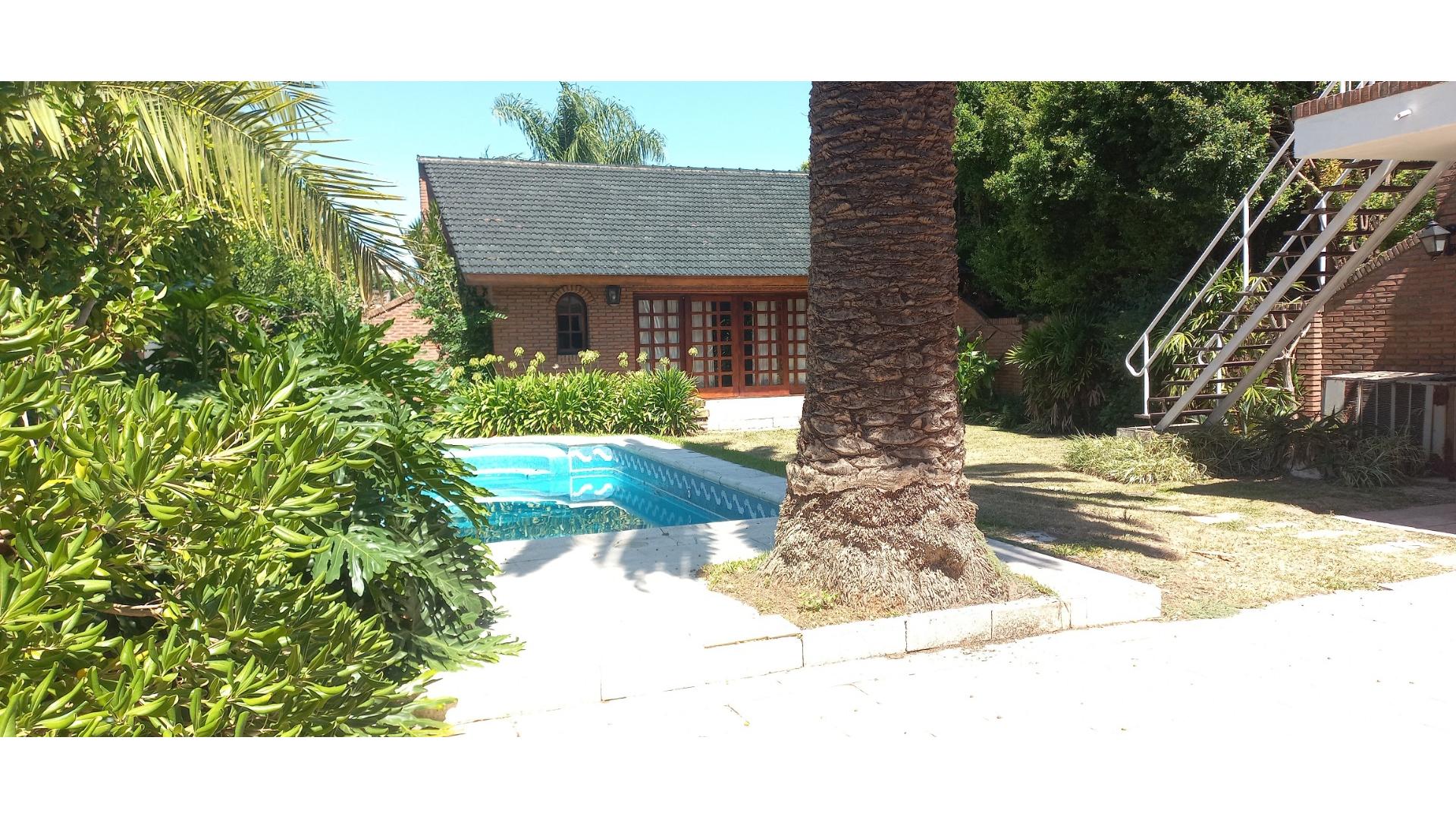PLANTA BAJA: LIVING, COMEDOR, COCINA, COCHERA, HABITACION DE SERVICIO CON BAÑO, LAVADERO, PATIO, PILETA CON SOLARIUM, AMPLIO QUINCHO (CON PARRILLA, SALON, BAÑO), PARQUE, PALMERA, TERRAZA.-